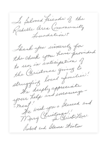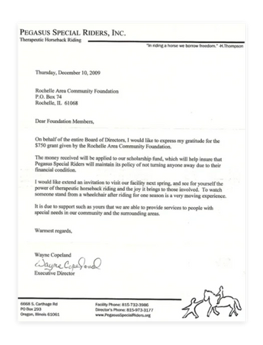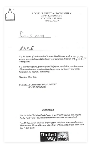 Contribute to an existing fund, or establish a fund to benefit a field of interest, non-profit organization, or recommend an annual grant to non-profit organizations you care most about. The Rochelle Area Community Foundation can accept charitable gifts in many forms.
