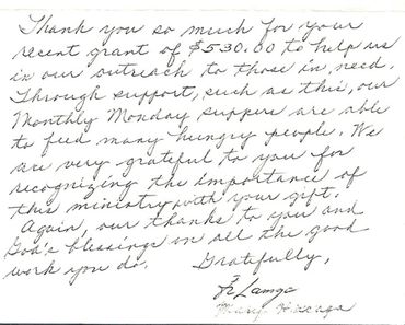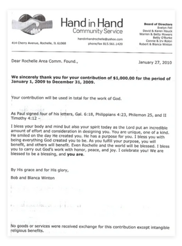 Definitely the most popular way to make contributions, both large and small. Gifts can be made electronically on our website, or checks can be mailed to PO Box 74, Rochelle, IL 61068